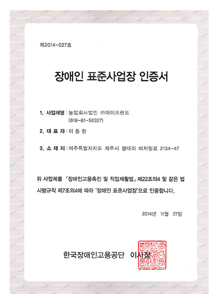 메이즈랜드의 가족들은 소외된 이들과 함께 하겠다는 설립자의 철학으로 관광서비스업 최초로 장애인표준사업장 인증을 완료하여 장애인, 노인 그리고 지역주민이 함께 어우러져 나눔과 배려의 직장을 만들어가고 있습니다.